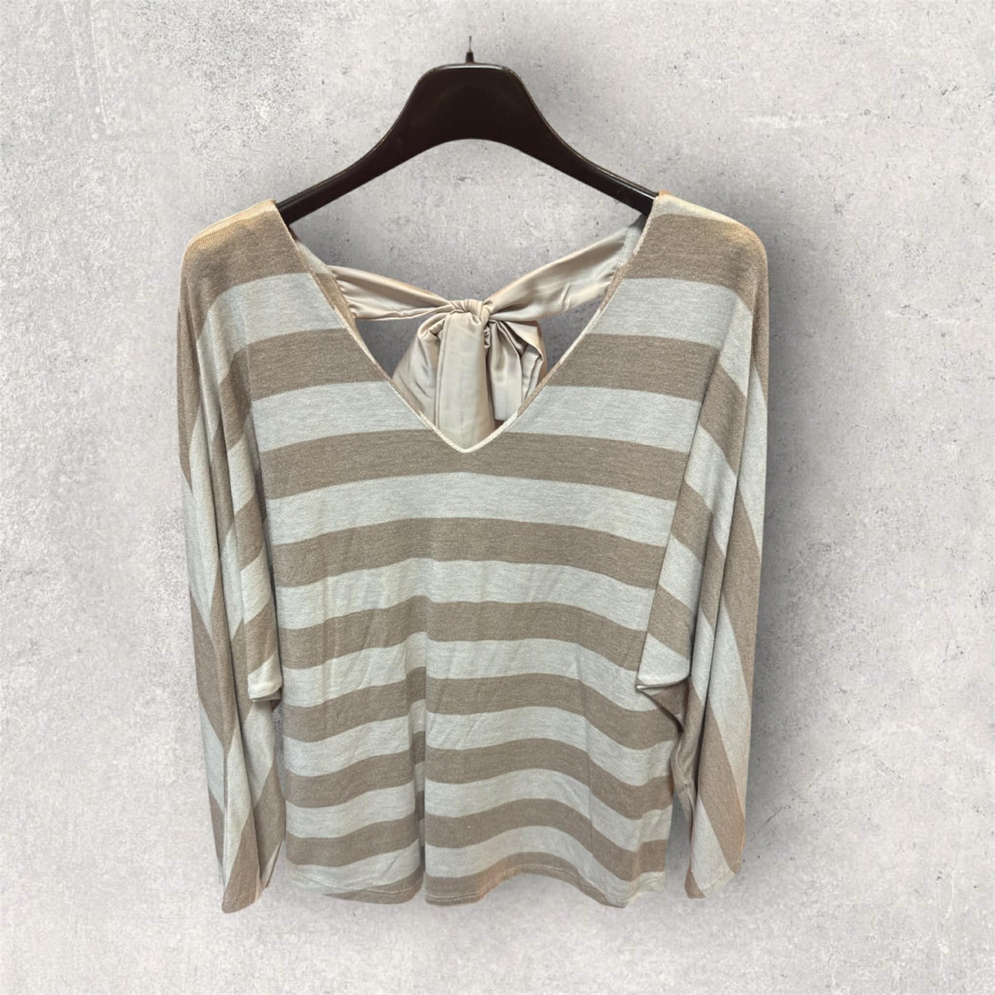Pull marinière taupe nœud satin