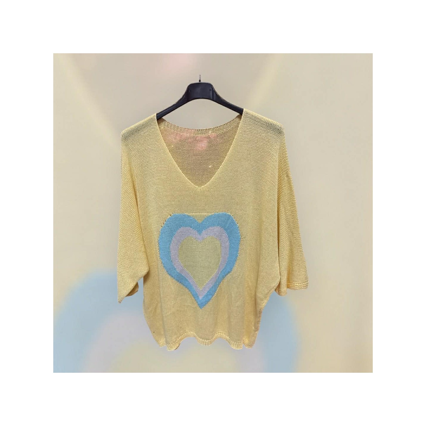Pull maille cœur jaune